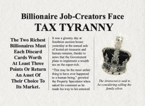 When the “Tax Tyranny” policy is set, the two richest players (those who have the most Assets they need to win) both must either discard cards from their hand worth a total of at least three points, or return an Asset of their choice to its Market.