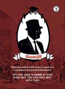 You can Reveal the Banker card and, for the rest of the Round, you may have up to three cards in your hand, but you still can only Buy with two cards.