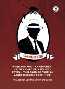 When you Audit an opponent, you can can Reveal the Gangster card to take an Asset directly from your opponent.