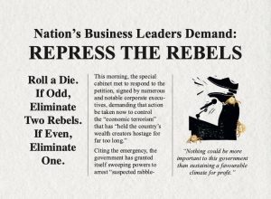 When all 10 Rebels have gathered, that’s it! There is a Revolution and all the Billionaires… er… well… it’s game over for them. Nobody wins.