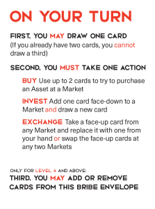 Give each player a Bribe Envelope. This helps you remember what you can do on your turn. For now, ignore the rules about Bribes – that’s for Level 4 of the game.